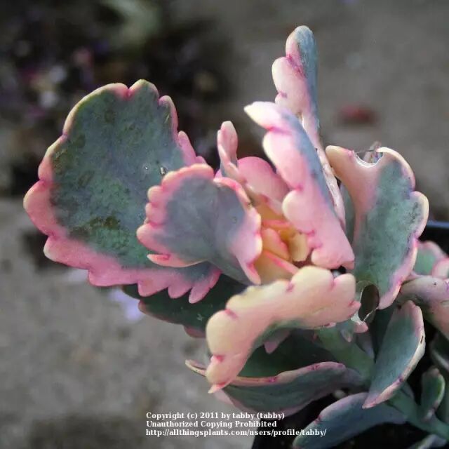 有个很有趣的问题:怎么样判别这种伽蓝菜属多肉,是否有落地生根的特性?很简单,看学名,一般还保留Bryophyllum的,基本都是落地生根。但要注意,这是异名,是无效的,不过据此可辨认出来。