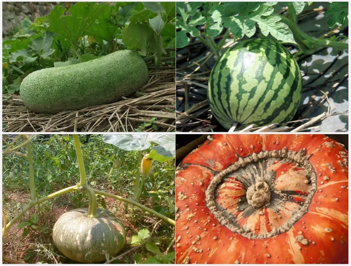 从左到右、从上到下依次是:冬瓜、西瓜、南瓜、北瓜。图片:Hortipedia
