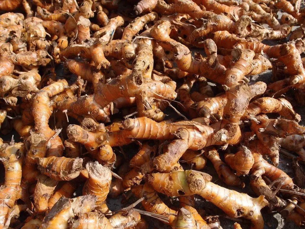 姜黄Curcuma longa,香料术语说的Turmeric就是它。姜黄根茎红赭色,切面橙黄,明艳的颜色,令人印象颇深。用干燥的姜黄研磨成的土黄色粉末,是制作咖喱的主角之一,用量的多少,直接决定了咖喱的辣味轻重和颜色深浅。姜黄味道的来源主要是姜黄素,让人辣到痛哭流涕,也要感恩戴德。