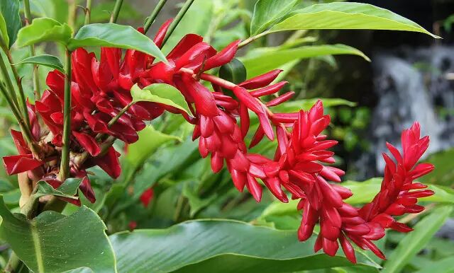 山柰几乎无地上茎,叶片直接从根状茎的芽点发生,贴近地面生长。常绿的叶片,大如蒲扇。我国南方有些地方用它们的叶子包裹或者盛放馅料,上锅蒸熟,或者把嫩叶切碎烹制,使得菜肴平添一股淡淡的姜味,风味独特。
