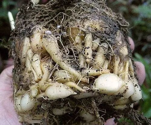 山柰(nài)这种姜,大家可能比较陌生,它们学名是Kaempferia galanga,姜科山柰属的多年宿根植物,原产于东南亚。和其他食用姜一样,它们也具有肥厚的根状茎,埋于地下,短而多节,多枚连接,所以和土豆一样,一棵成株可收获数量可观的块茎。