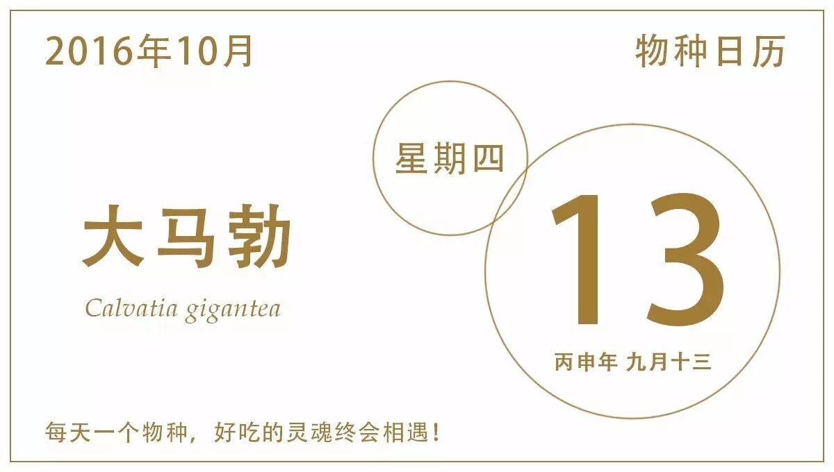 狭义来说的马勃不过几种,一如今天日历主角——大马勃,学名C. gigantea,是马勃科马勃属的成员,多为土栖型真菌,属名来源于cranium,意为头盖骨,可是明明像馒头好咩。大马勃的种加词意为“巨大”,这绝非浪得虚名,它们是菌类中的巨无霸,子实体相当硕大,赛过篮球,堪比西瓜,据说目前发现最大的大马勃有1.5米长,20几公斤,真真天赋异禀,但我脑子里还是“一个能喂饱好几十人呢~”!