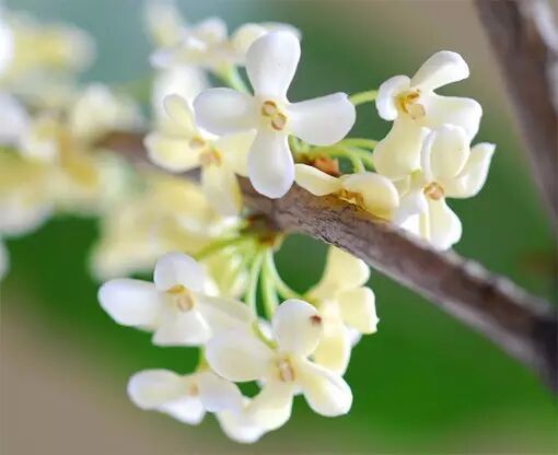 大部分桂花树在园林绿化中出现时,常以低矮的身姿为大家奉上清甜香气。虽然桂花的花朵只有绿豆般大小,但是一点都不影响它释放出浓浓的甜味,只要有一株桂花在开放,百步之内都能闻到这特殊的香气。那味道,就是混合了顺式罗勒烯和紫罗酮等香气物质的香甜味。