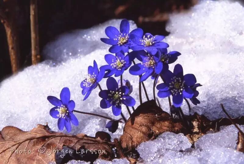 雪中开放的獐耳细辛属植物。图片:Jörgen Larsson