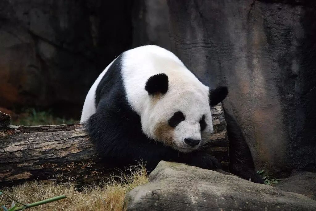 熊猫:哎呀憋走!等等我(快步翻过一个木头)