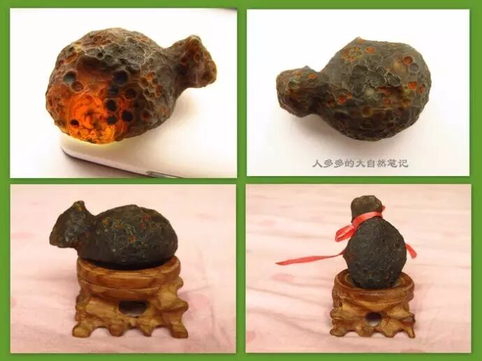 确黑的一块戈壁石,因形似某种动物而被我收入囊中,拿回来用手电一照,竟能透光,脖颈处系根红丝带就变身为钱袋了。