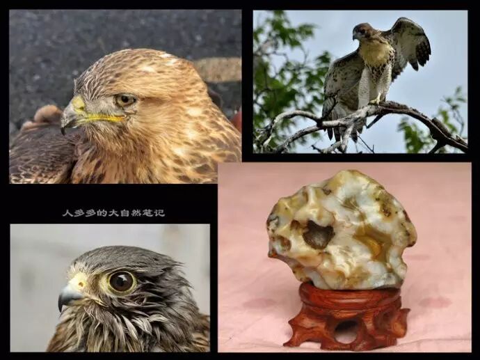 最近用电脑时,我左手里总是握着它,食指常很巧的就扣住一个坑洞,当我端详这坑洞时,竟然感觉对上了一只犀利阴鹜的眼睛,“眼窝”及很多凹陷处还残存着未被风化剥净的深褐色外皮。再端详下去,我惊奇地发现了一只雏鹰的头!又一块“奇石”!