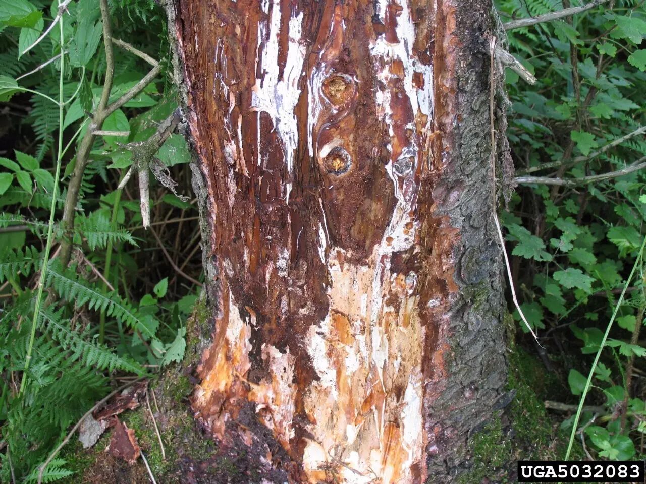 感染了蜜环菌的白云杉。图片:ipmimages.org