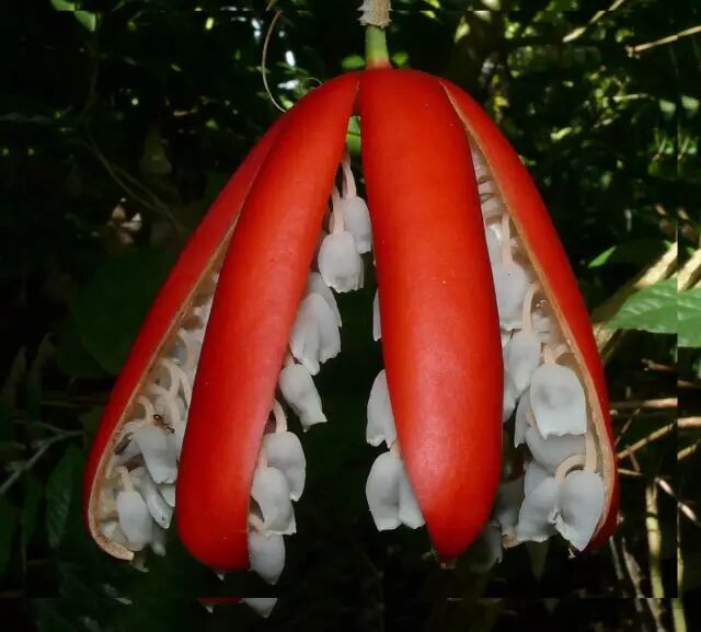 香蕉百香果 P. tarminiana 的花型也与亲戚们有明显的不同——没有须状副花冠且外形修长。图片:passionflow.co.uk