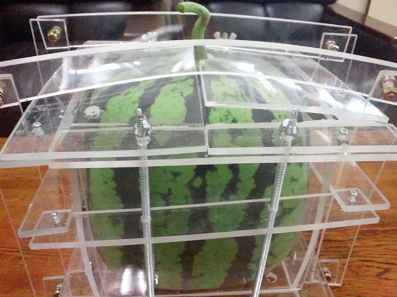 这种技术其实并不鲜见,前两年日本流行的方形西瓜也是用类似的手法,用模具制成的。有兴趣的话,用模具自己种出奥特曼也没问题,通常来说,葫芦科的果实有比较强的可塑性,甜瓜是首选。