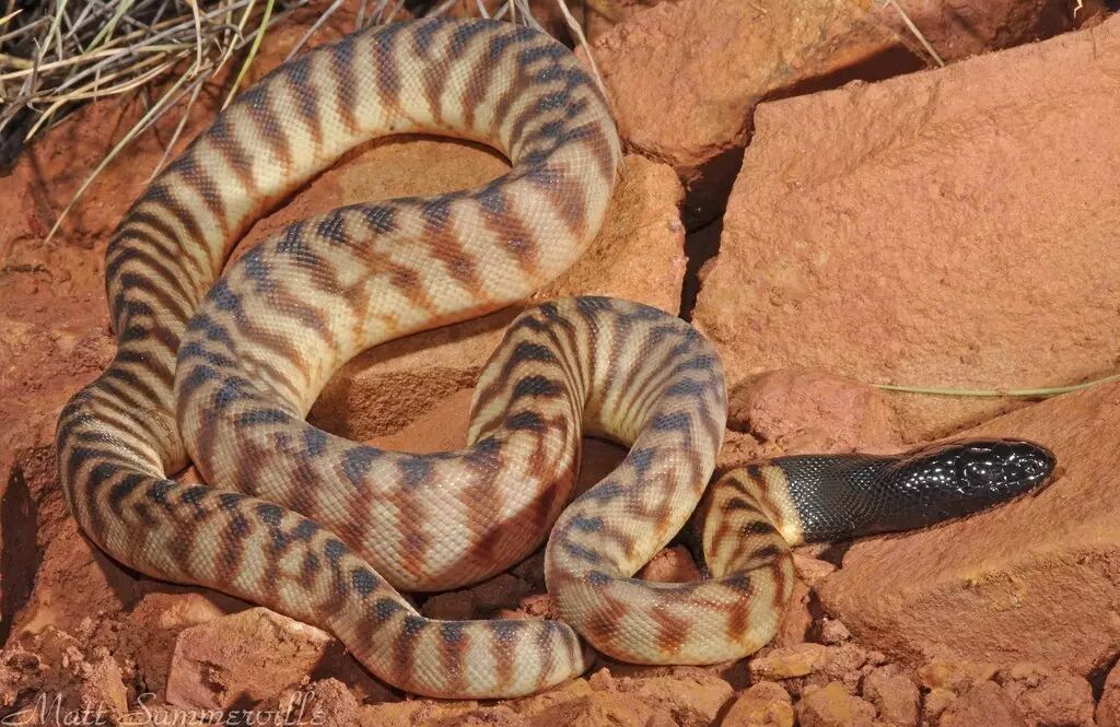 你很幸运,黑头盾蟒是澳大利亚为数不多的无毒蛇之一。在世界范围内,毒蛇与无毒蛇种类的的比例大概是1:4,但是在澳大利亚,毒蛇比无毒蛇还多。