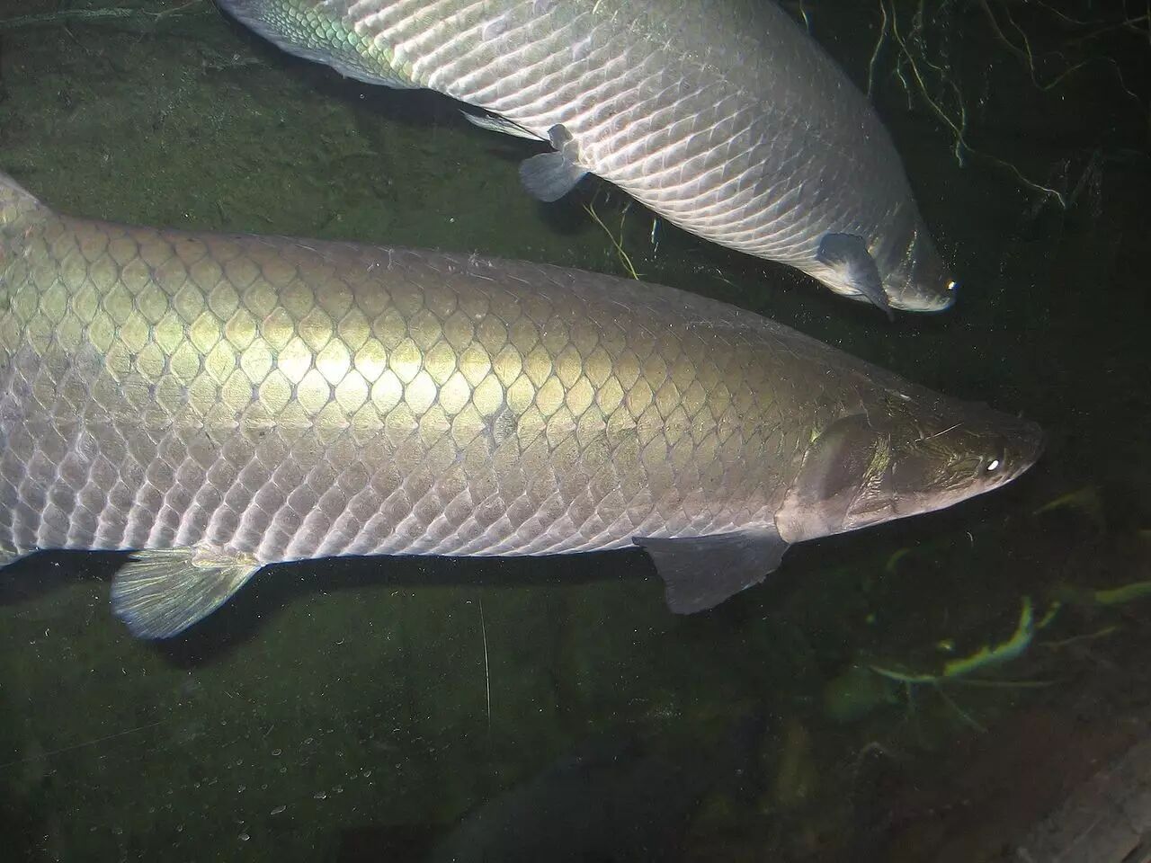 这是巨骨舌鱼,成熟个体可以长达2.5米,重100公斤。虽然它们主要以小鱼为食,但是当它们需要抵御掠食者的攻击的时候,会蓄积浑身的蛮力,用尾巴给敌人致命一击。一只成熟的巨骨舌鱼可以轻松击倒一个成年男性,骨折、内伤啥的不可避免。孤立无援的话搞不好就淹死咯。