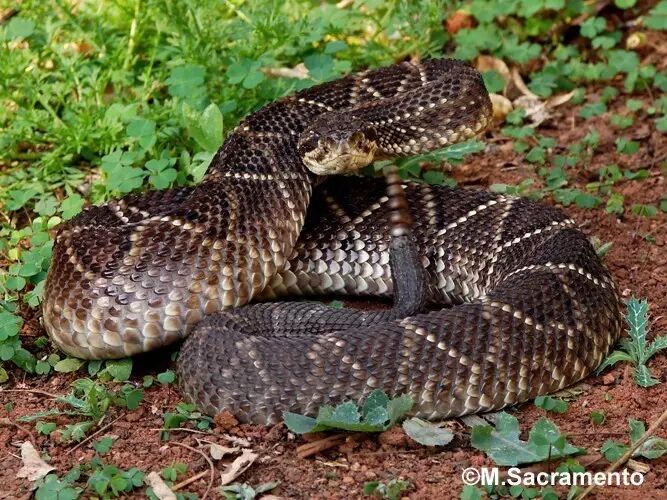 在亚马逊森林里,也还是有很多毒蛇在活动着的。虽然说南美响尾蛇更习惯在更干旱的草原上出现,但是在雨林边缘遇到它们也是常事。南美响尾蛇分布非常广泛,而且性格暴躁,经常发生伤人事件。如果没有准备好血清的话,万一被咬,可能会遇到很大的问题。