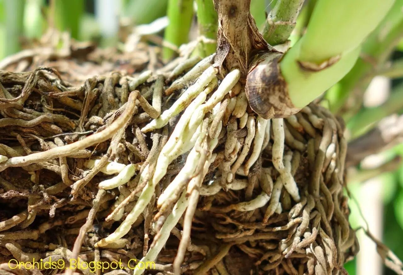 一种卡特兰的根部,没有一丝根毛。图片:orchids9.blogspot.com