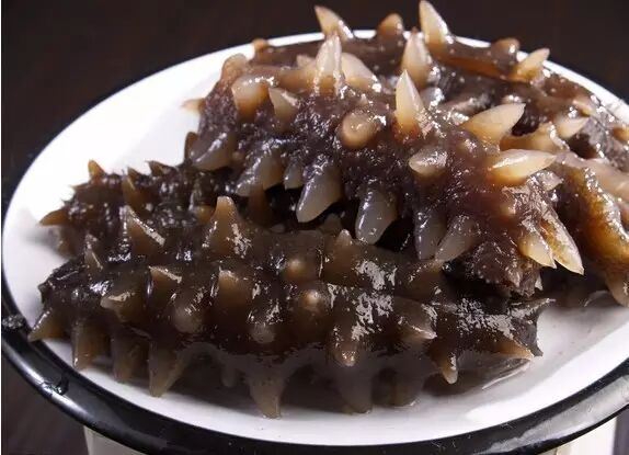以前寻常百姓家想吃刺参并非易事,除了身价被大肆炒作抬高外,它们自身娇嫩,脾气古怪,也是重要的原因之一。仿刺参离开海水后,在几个小时内会缓慢发生化皮现象,也就是“自溶”,等你发觉时已成一滩胶水了。这是由于仿刺参体内的自溶酶在做怪,离水后理化性质一变,温度一高或者遇到油分,海参自溶酶就会活化,启动极端的应激反应,溶解掉大部分体壁,真真是“质本洁来还洁去”。渔民们为了保存参体,常加盐晒干制成干货,防止其自戕造成的损失。所以想吃新鲜的仿刺参,那你就要北上了,辽宁山东一带海水温度低,营养丰富,此等环境下孕育出来的仿刺参自然品质不俗。南方人民想吃“滚子肉”着实不容易,只能高价买干制品发泡,不过现在台湾、福建都克服了这一难题,用低温海水成功养殖了仿刺参,大规模的养殖产业渐渐使得刺参昂首挺胸,进入了千家万户的餐桌上。