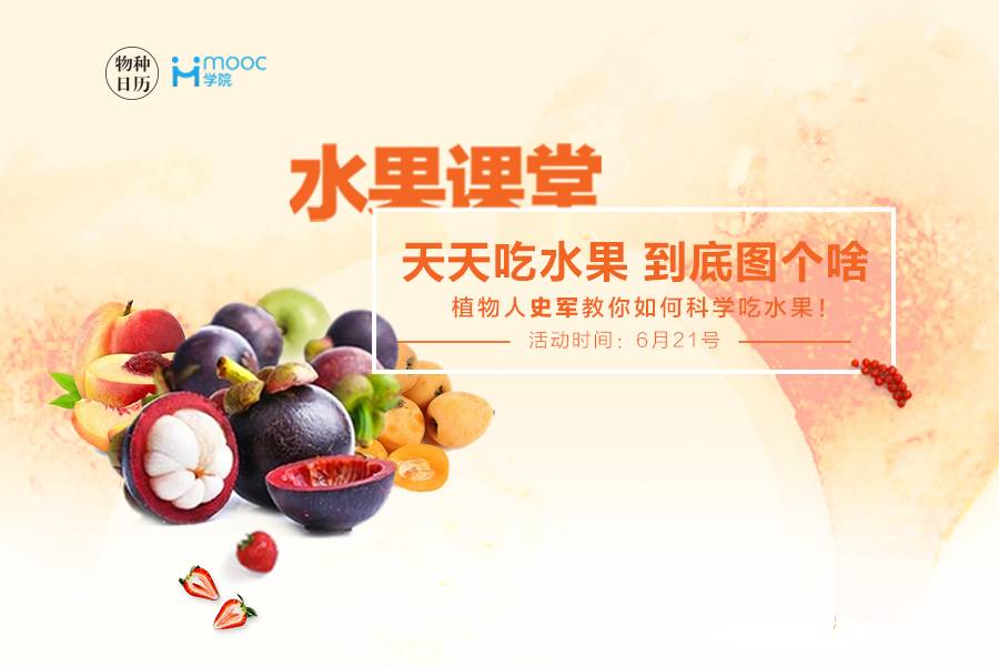 水果里都有些哪些重要营养成分?这些成分和我们的身体健康有没有关系?吃水果能不能让我们的皮肤更水灵?种种问题,史军老师都会在“物种日历”和“Mooc学院”联合主办的线上沙龙里详尽解答!