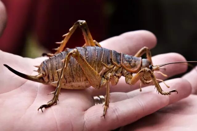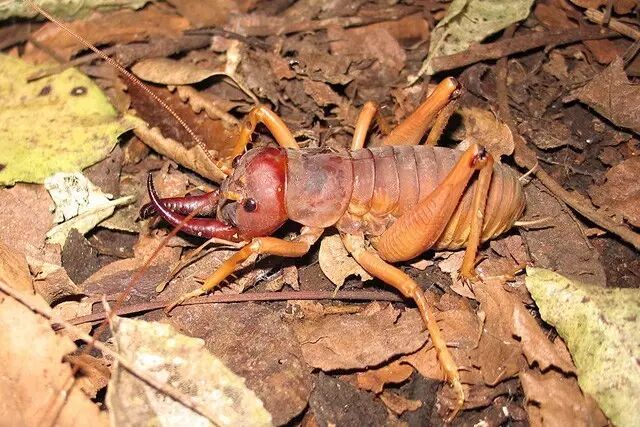 说到大,体重也是一个重要的衡量标准。最重的直翅目昆虫同样来自剑尾亚目,一种巨型沙螽Deinacrida heteracantha至今保持着71克的直翅目昆虫体重记录。这种昆虫曾经在新西兰广泛分布,但是就像那里的其他岛屿物种一样,它们面临着巨大的生存危机,现在新西兰主岛上已经见不到这种昆虫了,它们的分布退缩到一两个还没有被天敌入侵的小岛上。