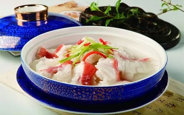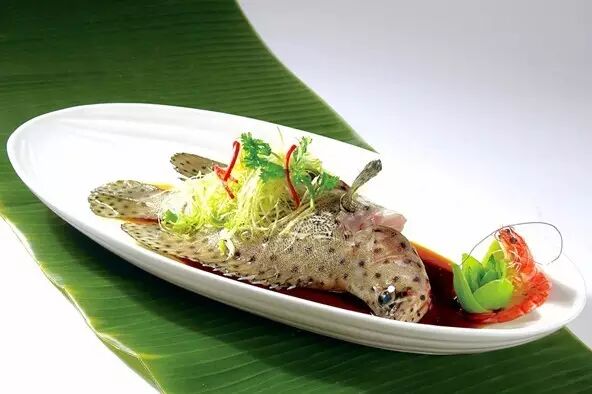 东星斑的名字来自于遍布全身的美丽的黑边蓝色小斑点,除了鲜红的体色,东星斑还有一种橄榄色的个体,但因为中国人更喜欢喜庆的红色,所以前者的价格是后者的一倍。东星斑肉质极其鲜嫩,口感在石斑鱼中也数上乘。
