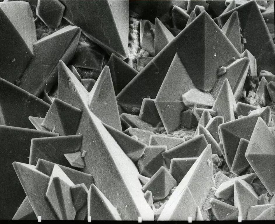 扫描电镜下一颗肾结石表面的结构,结晶的形状出卖了它草酸钙的真实身份。图片:wiki commons