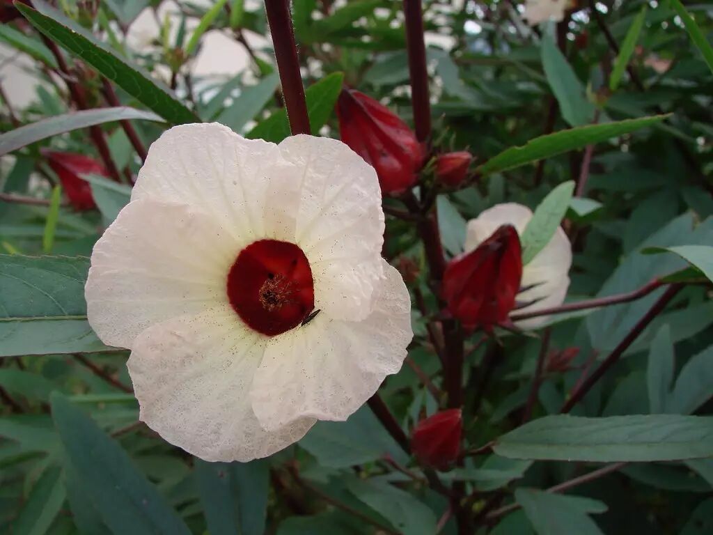 玫瑰茄是锦葵科木槿属的植物,老家在西部非洲。开头就说过,比起蔷薇科的玫瑰和茄科的茄子,同属锦葵科的棉花与玫瑰茄的关系更接近。与棉花能为我们提供纤维一样,玫瑰茄最初的功能也是提供纤维。只不过玫瑰茄的纤维并不是种子的附属物,而是茎秆产生的。