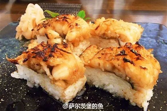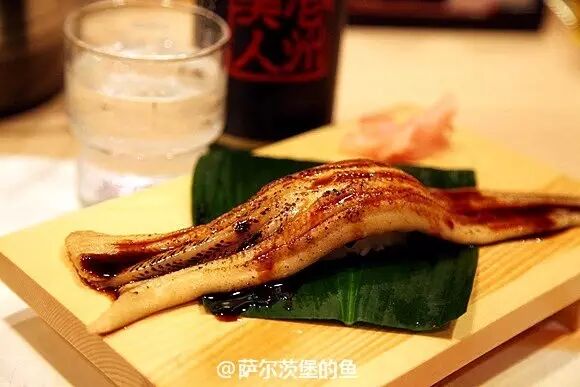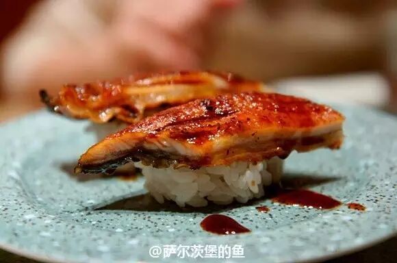 捏寿司的鱼肉一般经过蒸、煮刷汁儿或直接蒲烧。金黄色的皮裹着纯白色的鱼肉,缠绕着米饭放入嘴里,在口中缓缓融化。