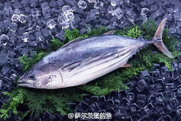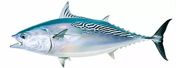另一种常见的“鲣”鱼,巴鲣(Euthynnus affinis)又叫白卜鲔、花烟仔。广泛分布于印度洋至太平洋温暖海域,典型特征是背部靠近尾端的花纹,口感和金枪鱼中腹有点相似,脂含量比鲣鱼稍高,在日本已经开始广泛人工养殖。
