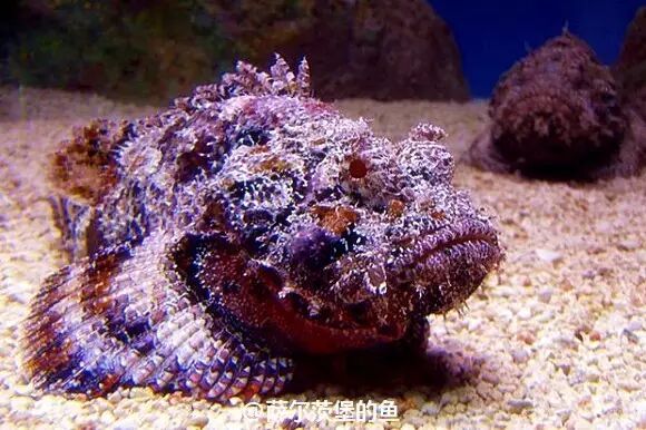 玫瑰毒鮋(Synanceia verrucosa)又称老虎鱼、石头鱼,印度洋太平洋海域广泛分布,喜欢停栖在礁石区域通过拟态融入周围环境,口巨大,体无鳞,表皮粗厚,背部有12-14根棘刺,背鳍刺基部有毒腺可分泌剧毒的神经毒素,质优量又足,可以致命。