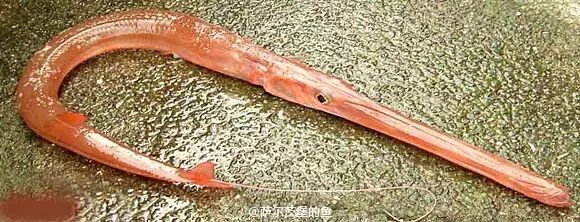 鳞烟管鱼(Fistularia petimba)又叫马鞭鱼、红烟管鱼,全球温热带海域广泛分布,长相十分放纵,体长而侧扁,后方圆柱形,嘴部为管状,尾鳍延长成丝状,日文汉字写作赤矢柄,意思是形似一支长箭的箭柄,最长可长到1.5米超过5公斤,在日本属于高级刺身鱼种。