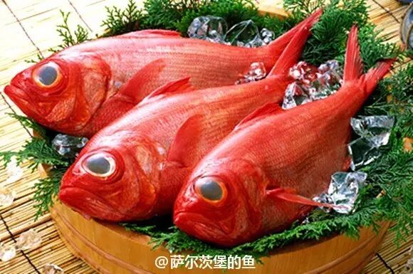 金目鲷(Beryx splendens)又称红金眼鲷、大眼鲷,分布于日本南部及大西洋,属于热带深海鱼类。体色鲜红,有水晶球一般的金色大眼睛。冬季出产的金目鲷品质最好,肉质细腻,油脂含量适中,整条的金目鯛の煮付け(加入糖、清酒、酱油、味淋一起炖煮)通常只在高级日料店才提供。新鲜的金目鲷适合活造和捏寿司。