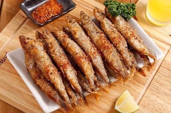 柳叶鱼是北海道鹉川町著名渔产,每年10-12月最天寒地冻的时候,柳叶鱼便溯河而上洄游产卵,此时捕获的雌鱼大腹便便最为肥美,干制后可以吃一整年。多春鱼虽小,但和鲱鱼相似,脂含量较高,丰富的脂肪加热后带来了浓郁香味,加之满满一肚子的鱼籽,那种在口中瞬间爆裂的感觉,实在是无比美妙。