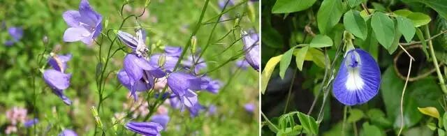 左:苏格兰的“蓝铃花”——圆叶风铃草(Campanula rotundifolia);右:西非的“蓝铃花”——蝶豆(Clitoria ternatea)。图片:wiki