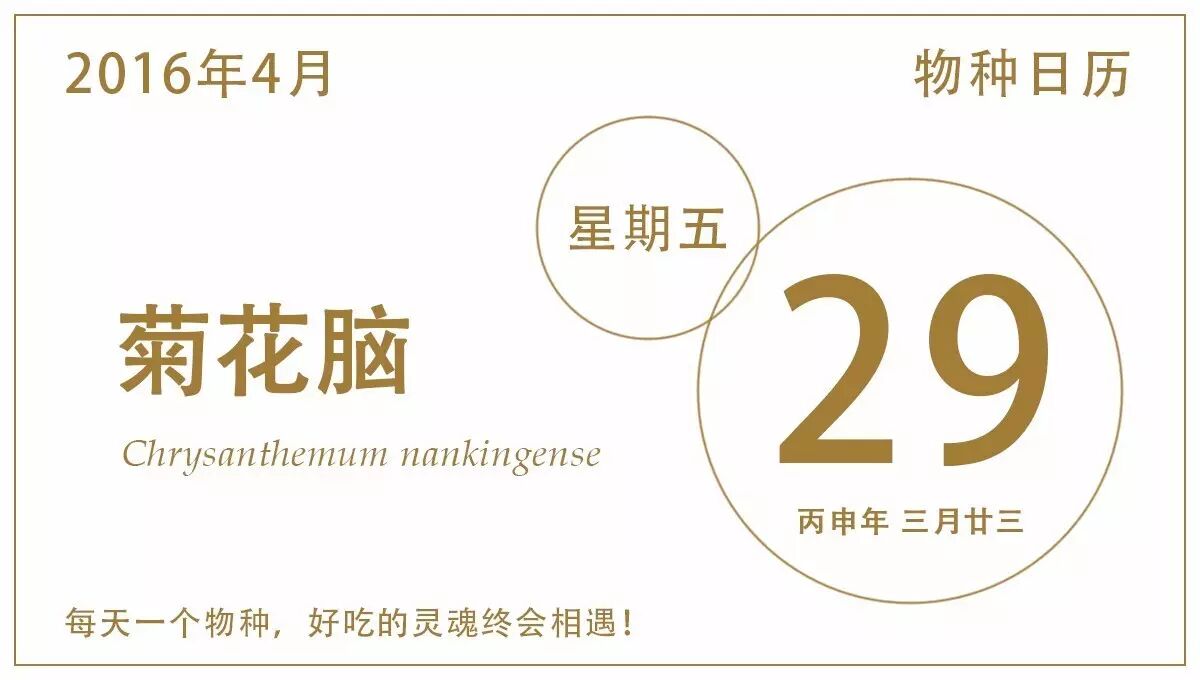 菊花脑,又名菊花叶,菊叶,分类学上有种观点(比如日历娘站的这一派)认为它是单独的一种,Chrysanthemum nankingense(日历娘也不知道为啥印成了nanjingnese),还有一派认为菊花脑是野菊(Chrysanthemum indicum)的一个食用变种,我觉得大家支持哪派都没关系,反正菊科是那么巨大那么难以分辨的一个科,能够定到菊属已经很不错了,不必强求种的划分了。Chrysanthemum泛指菊属下的各种菊花,可以用来描述喝的菊花茶,周董的《菊花台》,和这里的菊花脑。此词来自于希腊语,chrysos“金色”与anthemon“花”的组合。虽然并不是所有菊花都是黄色的,不过菊花脑的花的确是黄色的,只是如果要吃菊花脑的嫩茎叶,一定要在开花前很久就采摘下来,不然会非常老。记忆中如果妈妈买到了过老的菊花脑煮了鸡蛋汤,我就总是一边吃一边挑出很多纤维素来。
