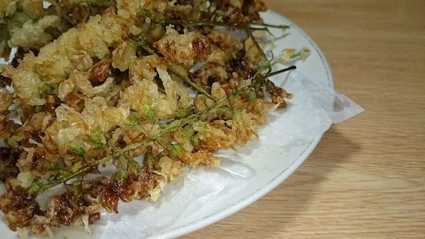 在查找食谱的时候,我发现油烹鲜花真的是世界各国吃货的共同爱好,如意大利的Fiori d’Acacia Fritti,其实就是意大利天妇罗,不过他们在面粉里还放了牛奶。