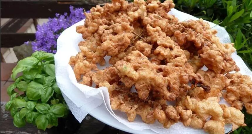 这一盘Fiori d’Acacia Fritti已经被油炸到它妈都认不出来了。图片:langolodeltetto.com