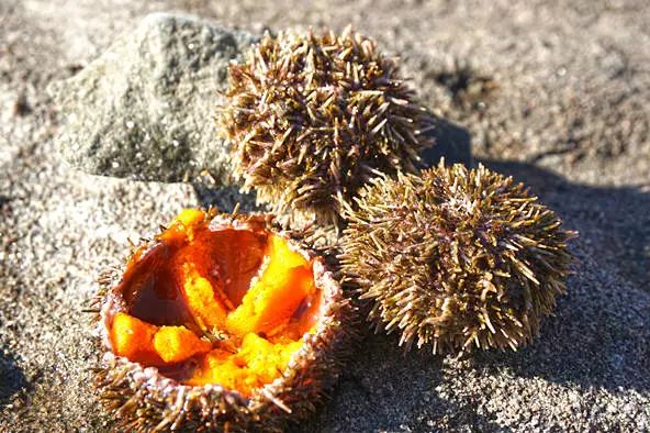 人类对海胆黄是如此的迷恋,那种舌尖感受到的奇妙触感和涌动的滋味真是难以言喻。我们食用的海胆黄其实是海胆的生殖腺,所以无论雄海胆还是雌海胆,在繁殖季节都有着金黄诱人的海胆黄。