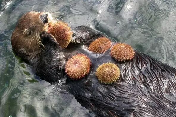 PS:不要以为只有你们人类才爱吃海胆,咱海獭一口气嗑五个,不费劲儿!