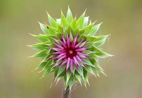 牛蒡(Arctium lappa),菊科,牛蒡属二年生草本植物,广泛分布于欧亚大陆,高可达2米,地上部分特征明显很好认,茎通常带紫红色,头状花序具有一个球状的总苞,苞片披针状或线状钻形,顶端有软骨质钩刺。所有苞片都向外支楞着,看起来像一个大刺球,其种加词lappa意思即为“毛刺”。牛蒡的花是紫红色,看上去颇像是蓟属或飞廉属的植物,但牛蒡的叶子要巨大得多,而且边缘没有蓟属或飞廉属常见的针刺。