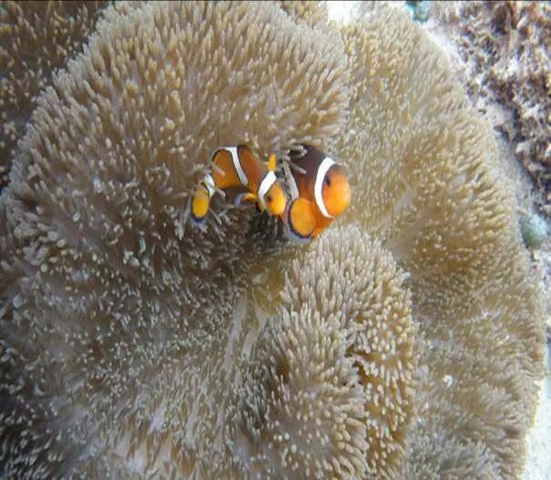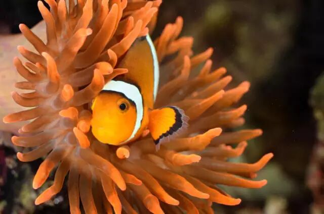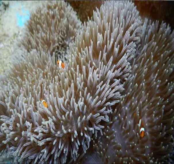 小丑鱼身上的黏液层比其他的鱼厚三四倍,其中不仅有它自身的黏液,还混合了海葵的黏液。幼鱼出生后就开始小心翼翼蹭着海葵的粘液,为了以后能进出自如。