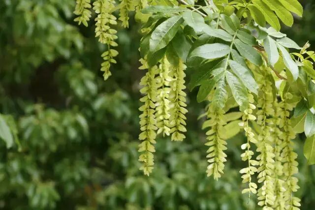 第三,如果能看到山核桃果实的“完全体”,那么你肯定不会和胡桃弄混——相比于胡桃光滑、黄绿色的肉质外果皮,山核桃的外果皮黄色、干燥,并且有4个明显的棱。