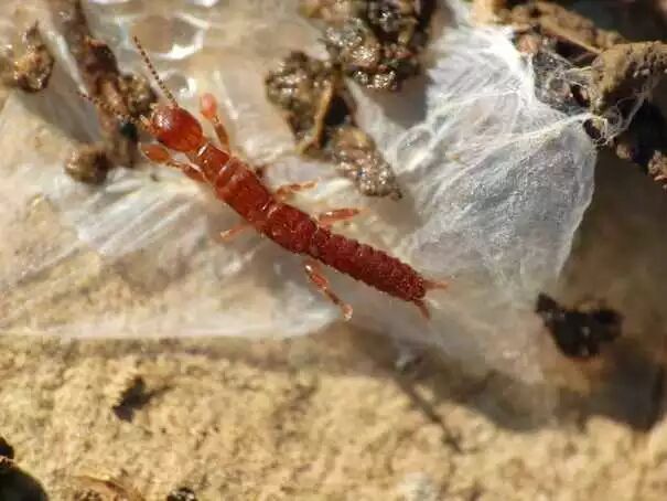 通称足丝蚁,和蚂蚁并没有关系,是一个热带小类群。会用丝网和丝质管道在树皮或落叶层里筑巢。这也是唯一真正使用前足吐丝的产丝动物,所以蜘蛛侠其实要么应该改名足丝蚁侠,要么应该从身体另一头吐丝。