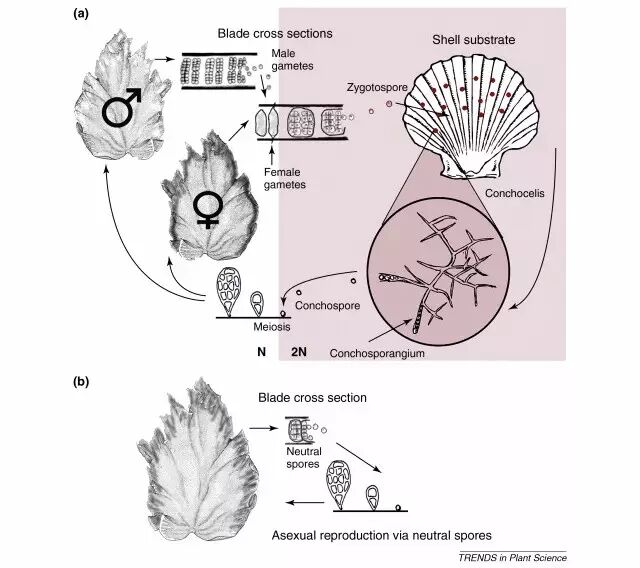 紫菜的世代交替过程。图片:Trends in Plant Science