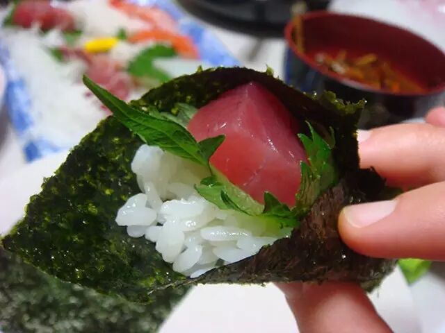 金枪鱼手卷寿司——紫菜的用量不小。图片:thejoyfulkitchen.wordpress.com