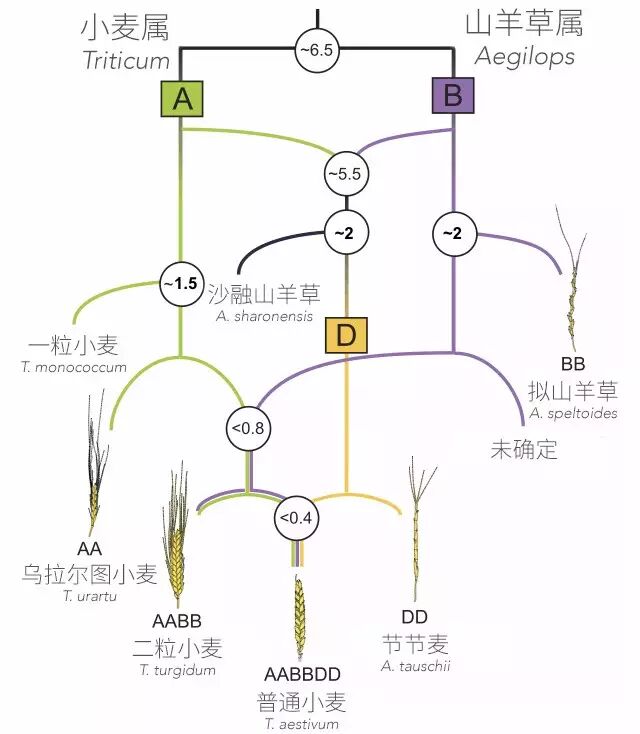 小麦的驯化培育过程。图片:图片:David Morrison自Marcussen T et al, Science 345(6194):1250092,汉化:老猫
