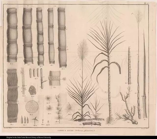 甘蔗(热带种)的科学插画。图片:jcb.lunaimaging.com,选自:Précis sur la canne et sur les moyens d'en extraire le sel essentiel