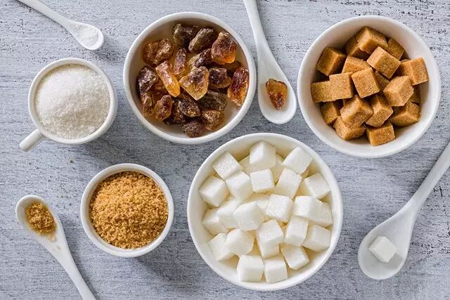 不同颜色、质地的蔗糖。图片:shutterstock.com