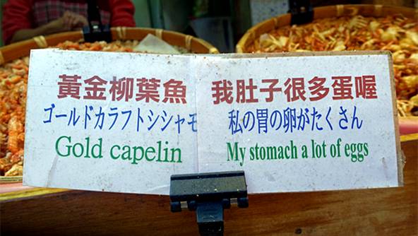 台湾街头贩卖多春鱼的小铺,比我还大雾的翻译告诉人们,这的确是种以美味鱼籽见长的小鱼儿。