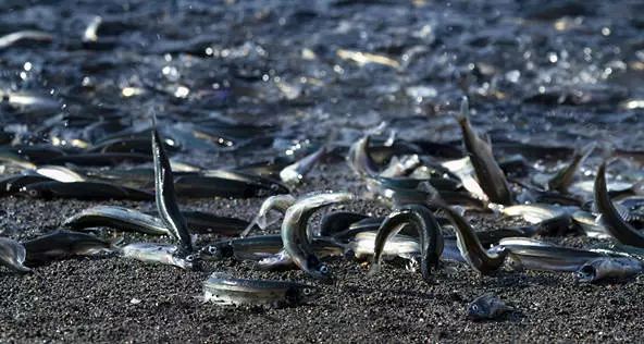 交配季被冲上岸的毛鳞鱼。图片:fish.base.org