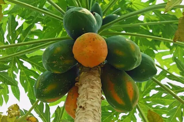 番木瓜原产中美洲和南美洲,是番木瓜科的科长,也是番木瓜属唯一的成员——这个属曾经有多达45个种,不过现在都被拆分到其他属里去了。最早栽培番木瓜的据说是墨西哥人,随着西班牙殖民者的到来,这种植物逐渐扩散到加勒比群岛、非洲乃至东南亚的欧洲国家殖民地。整个地理大发现时期,欧洲人在为新世界的物种命名时一直比较偷懒,番木瓜就一直沿用中美洲土著的发音,被叫做papaya、papaw或者pawpaw。到了18世纪,林奈在给这个属起学名的时候也继续犯懒,尽管他加入了一点自己的见解:林大爷认为这种植物的果实长得像无花果(请问哪里像了!),于是番木瓜属的属名就和无花果的种加词一样了;至于番木瓜的种加词?继续沿用papaya呗。