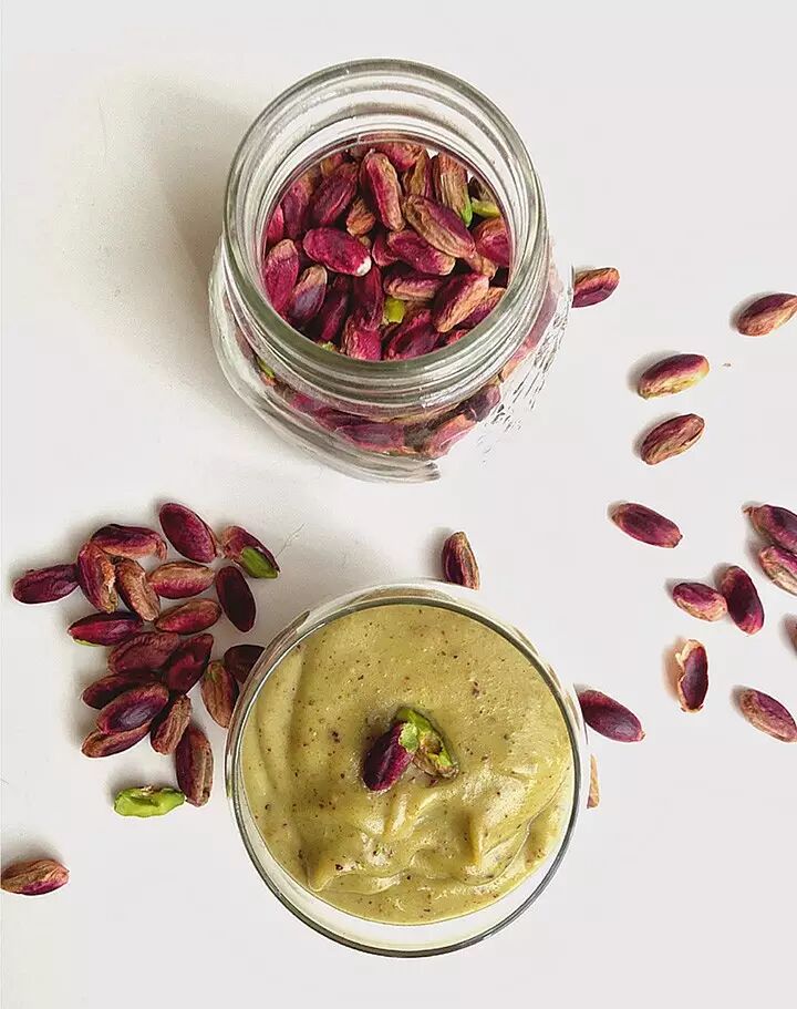 就算被打成开心果酱,开心果酱(ちゃん)依然能保持(不太鲜艳的)绿色。图片:nutsaboutfooditaly.blogspot.com