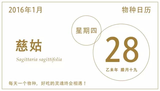 另外,有一种鳞茎可食用的水生植物经常和慈姑搞混,那就是荸荠。其实区分起来也容易,荸荠的球茎是扁球形、紫黑色的,芽很短;慈姑的球茎是球形、黄白色的,芽很长。慈姑的名称来自慈母的形象,怎么能和bitch混为一谈呢?